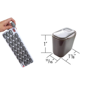 - Individual pods: 1” x 0.75” x 1”